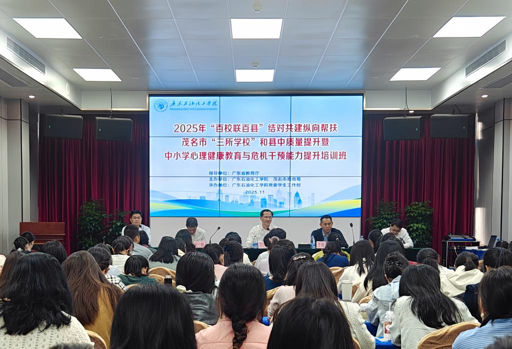 2025年11月6日—7日,由广东省教育厅指导,广东石油化工学院、茂名市教育局主办的2025年秋季茂名市中小学生心理危机干预能力提升培训班在茂名市文汇酒店举行。来自全市的100多名中小学心理教师参加的培训,茂名市教育工委委员、市教育局副局长刘广海,广东石油化工学院党委学生工作部副部长李翔宇等出席开班仪式。